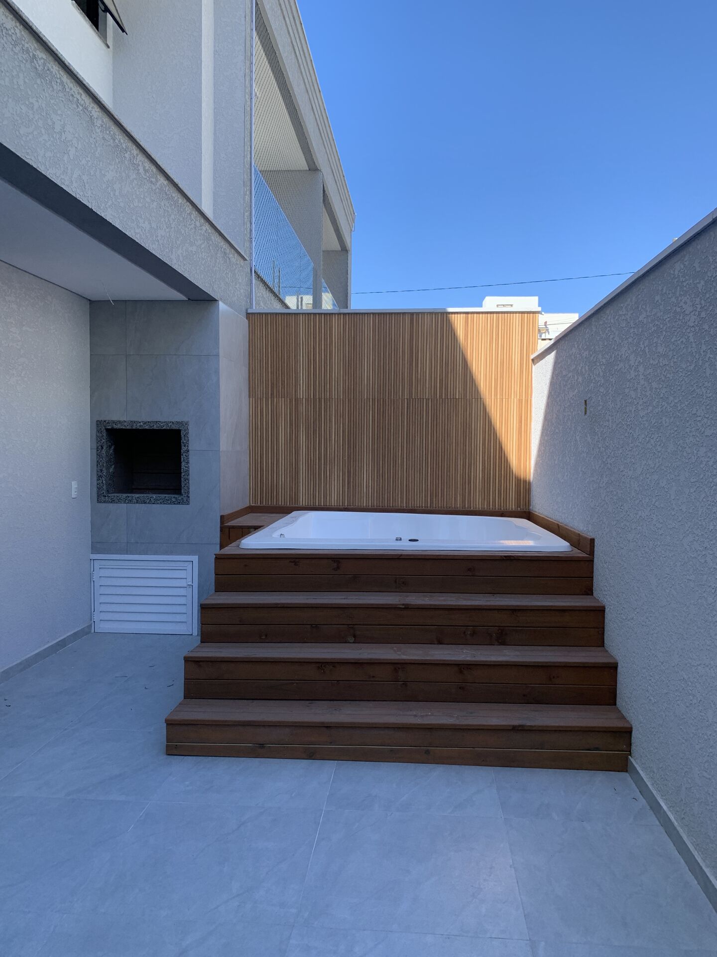 Conta com 3 dormitórios, sendo 1 suíte, living amplo e integrado, espaço gourmet com hidromassagem, jardim privativo e duas vagas de garagem.
